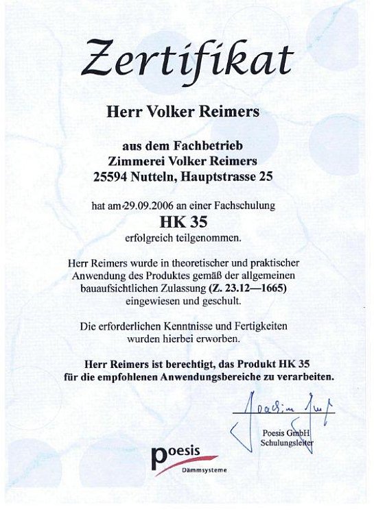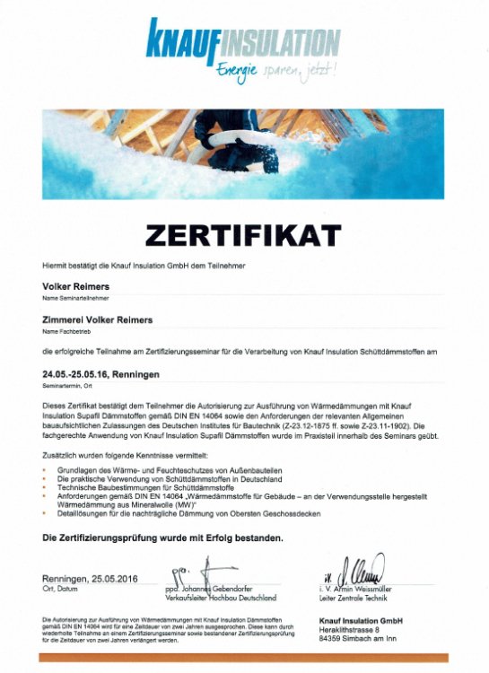 ist unsere Zimmerei als zertifizierter Fachbetrieb zum Einbringen